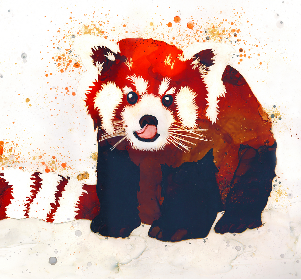 Katrina works with alcohol based ink on Yupo paper (a synthetic paper) to create vivid and fascinating paintings of animals. The paper she works on allows a longer working time with the ink. Together with a blending solution she can allow the ink to flow freely across the page to create captivating patterns and shapes.